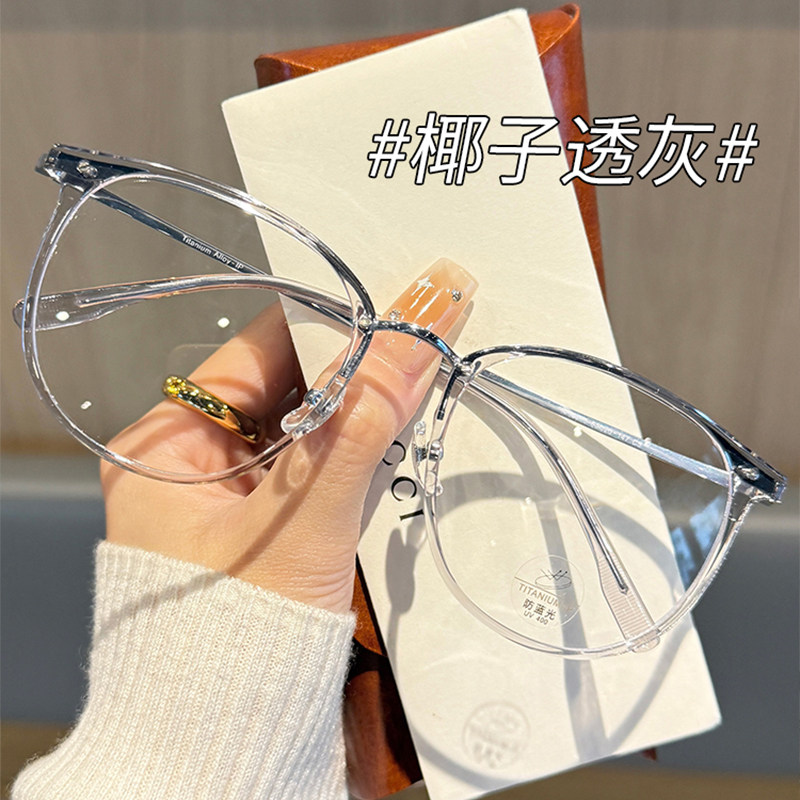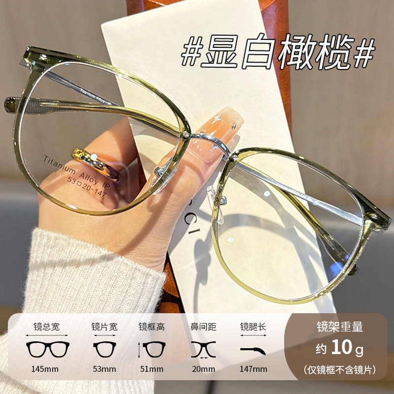 loho冷茶色素颜超轻眼镜女近视可配度数防蓝光大脸高级感眼睛镜框