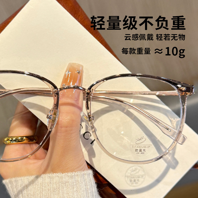 纯钛圆框近视眼镜蔡司防蓝光女可配度数素颜文艺细边眼镜框镜架男