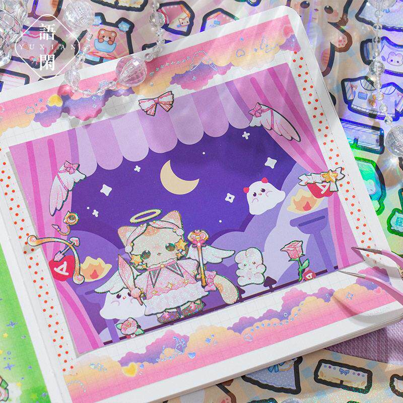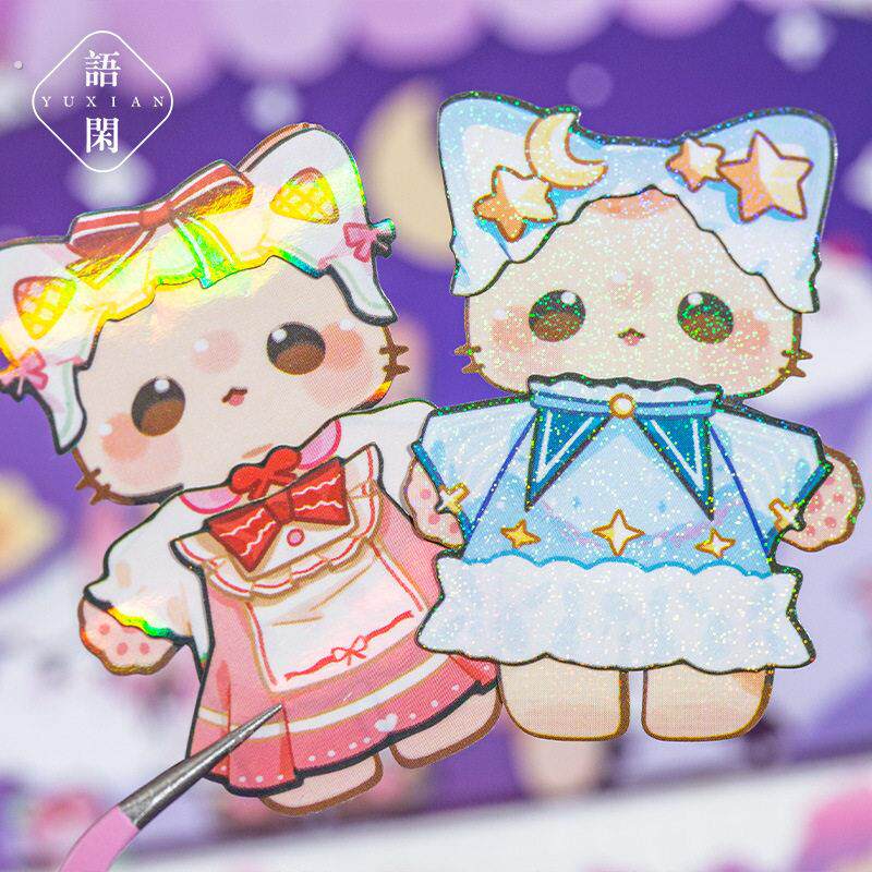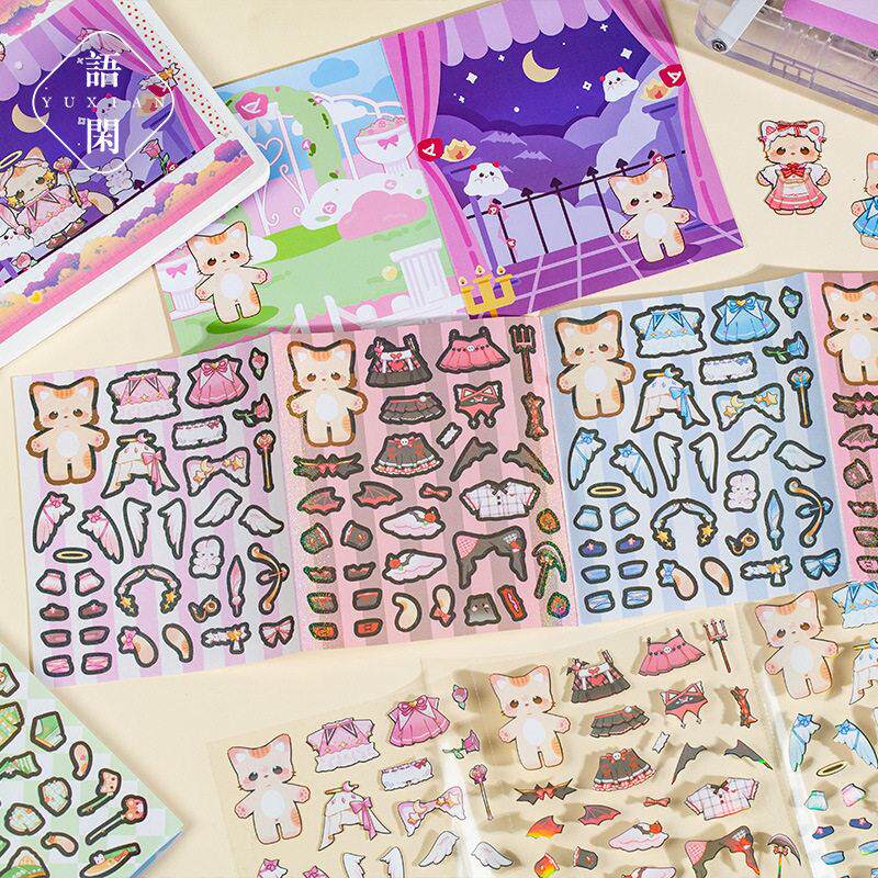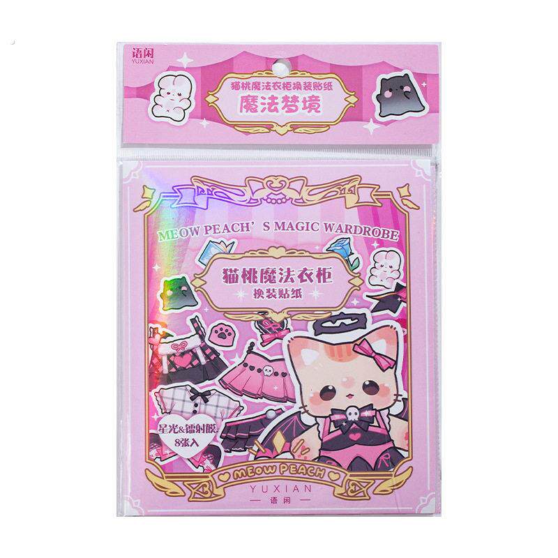 猫桃魔法衣柜闪闪的换装贴纸猫咪换衣服套装儿童玩具小动物手帐贴