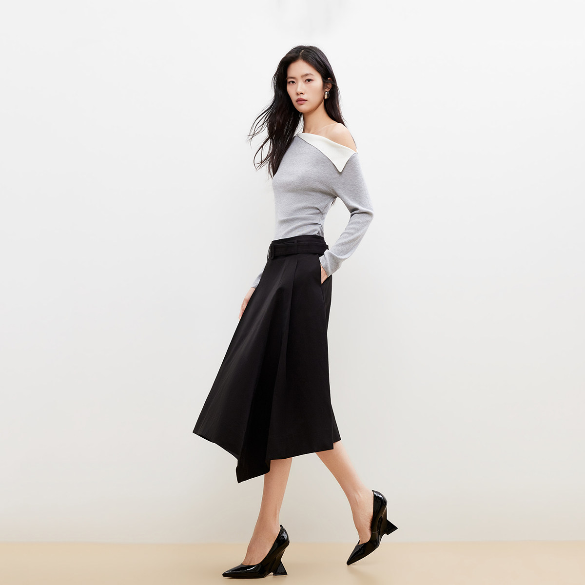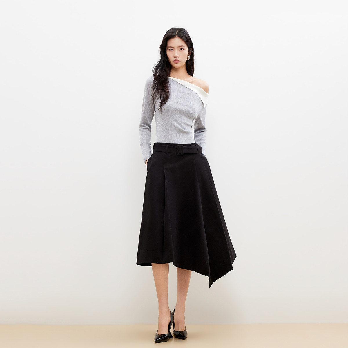 Vero Moda半身裙2026春季新款含棉A字不规则下摆中长裙326116008