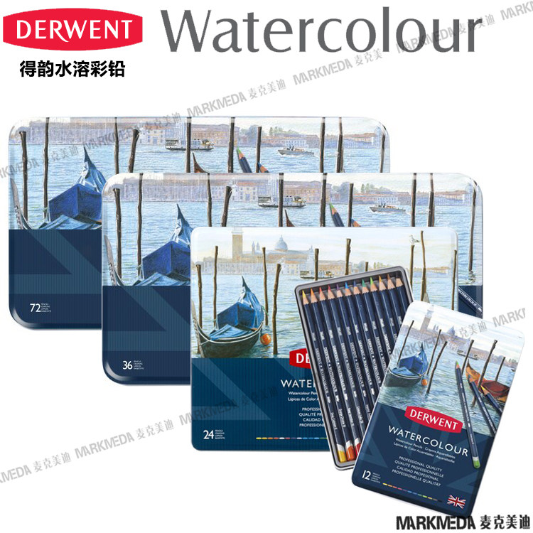 英国进口DERWENT得韵水溶彩铅Watercolour水彩铅笔 单支 铁盒套装