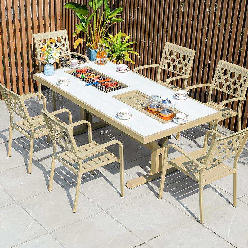户外烧烤桌椅方台双炉烧烤餐桌椅围炉煮茶室外桌椅铝合金椅子