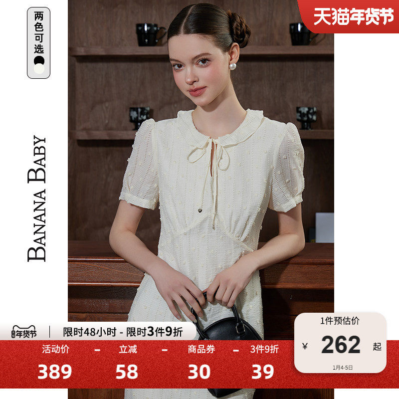 BANANA BABY2026年春季新款娃娃领气质连衣裙女显瘦通勤鱼尾长裙
