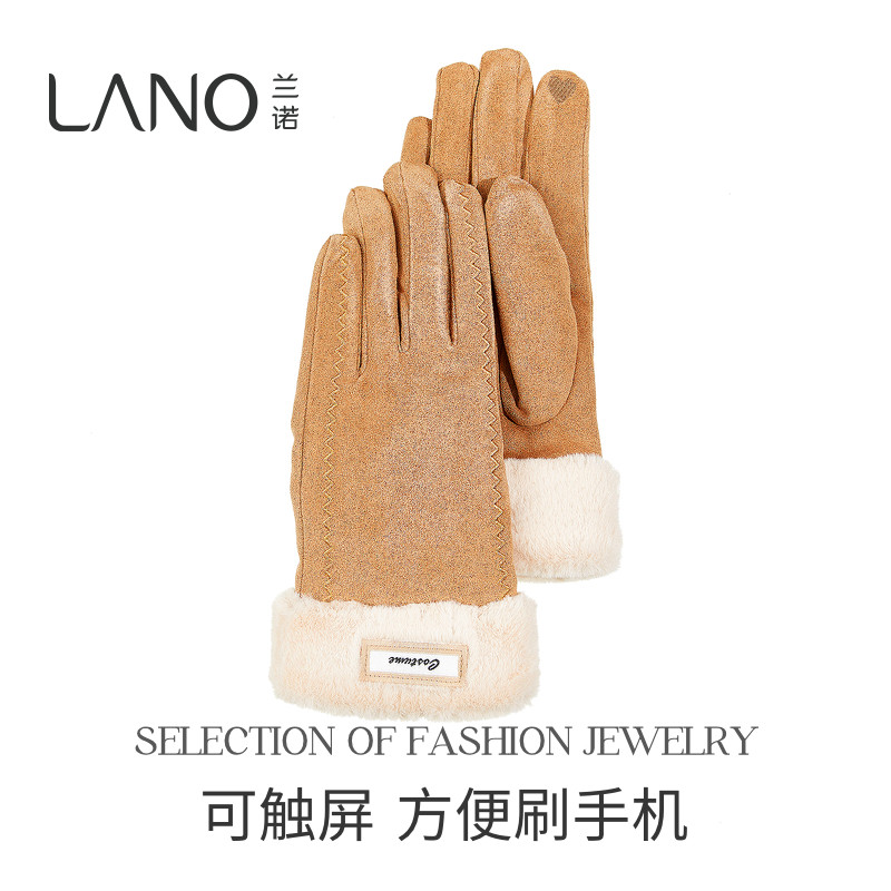 兰诺户外骑行手套女士可触屏2025新款冬骑电动车加绒保暖防寒手套