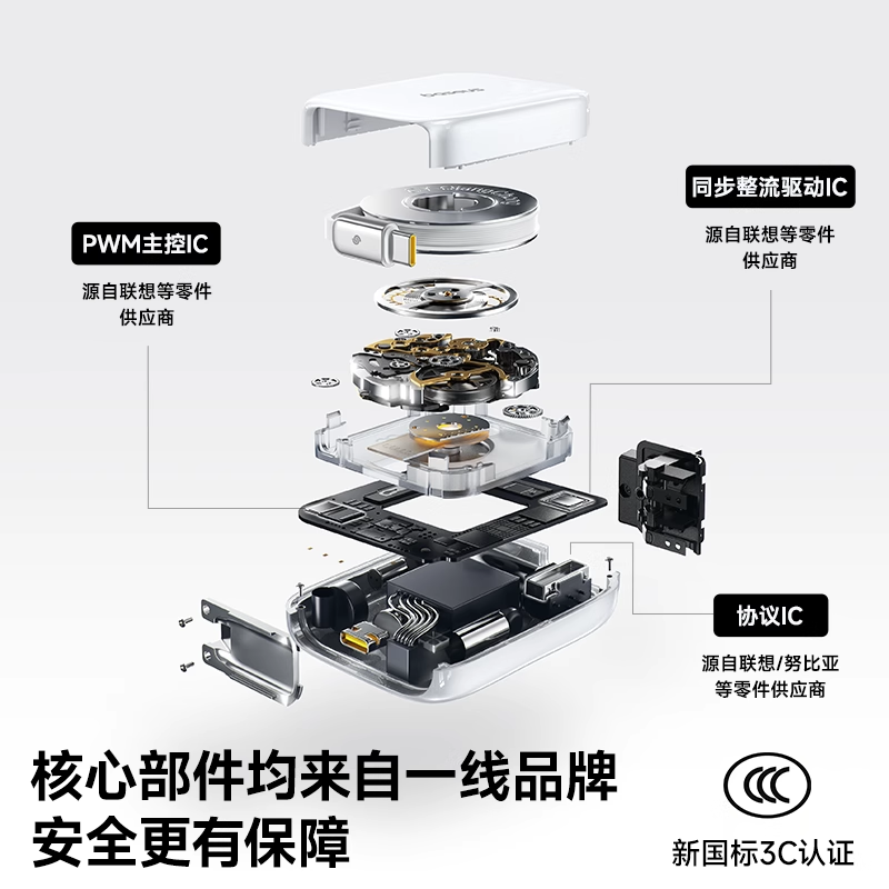 【国家3C认证】倍思灵动充67W充电器45W氮化镓适用苹果17Pro伸缩线自带线快充头iPhone16Promax充电头手机