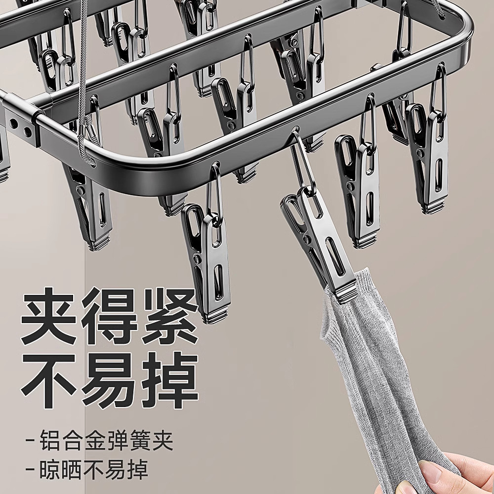 不锈钢袜子晾晒架多夹子家用无痕挂架内衣内裤晾衣架阳台防风神器