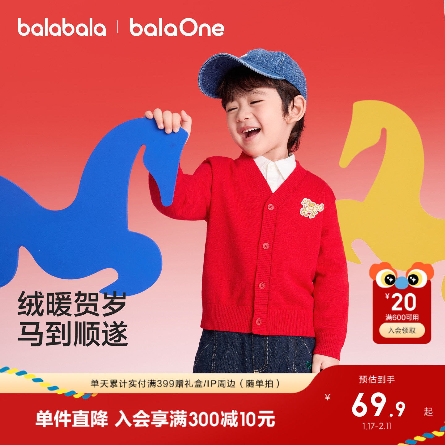巴拉巴拉童装儿童毛衣男女童2026新款春装针织开衫红色毛衫拜年服