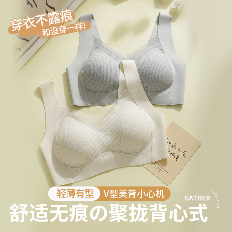 无痕内衣女小胸聚拢夏季薄款运动一体美背心式固定杯无钢圈文胸罩