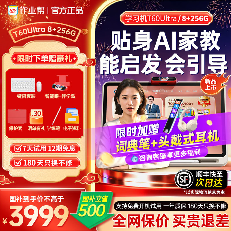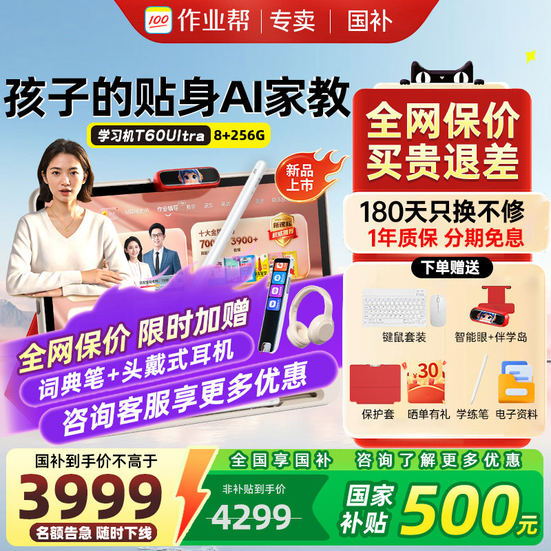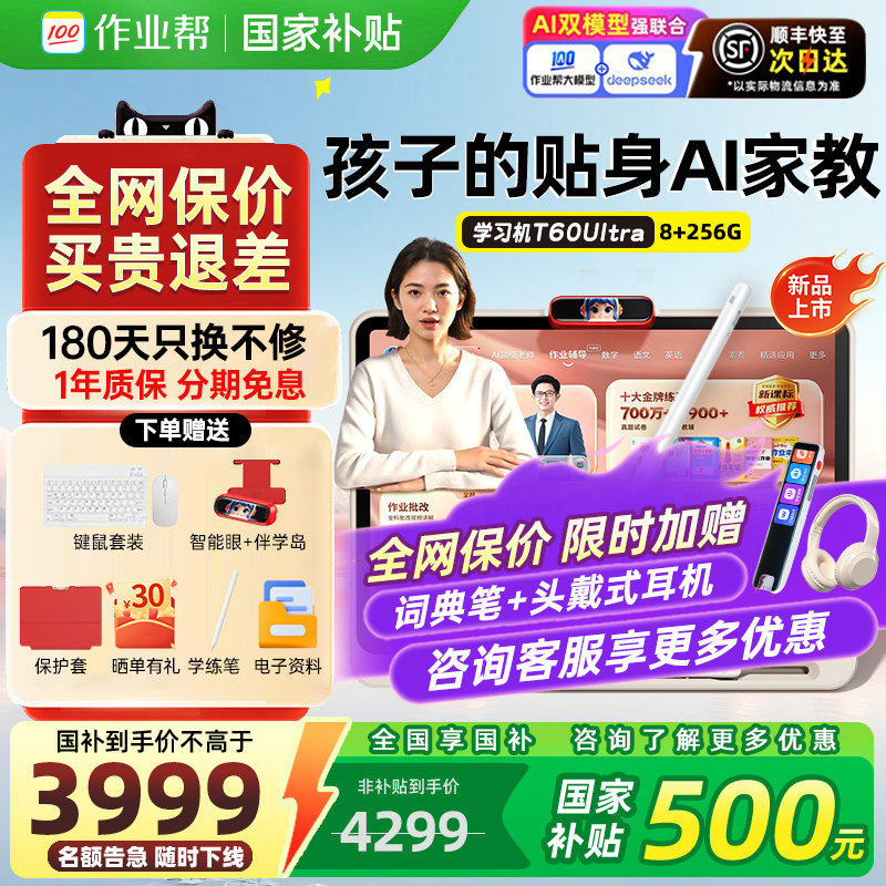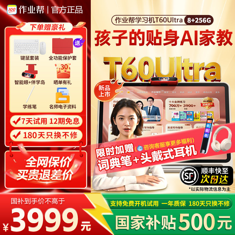 【88券减150】作业帮学习机T60 UItraP60智能学练机一年级到高中儿童护眼大屏小初高学生英语点读机辅家教机