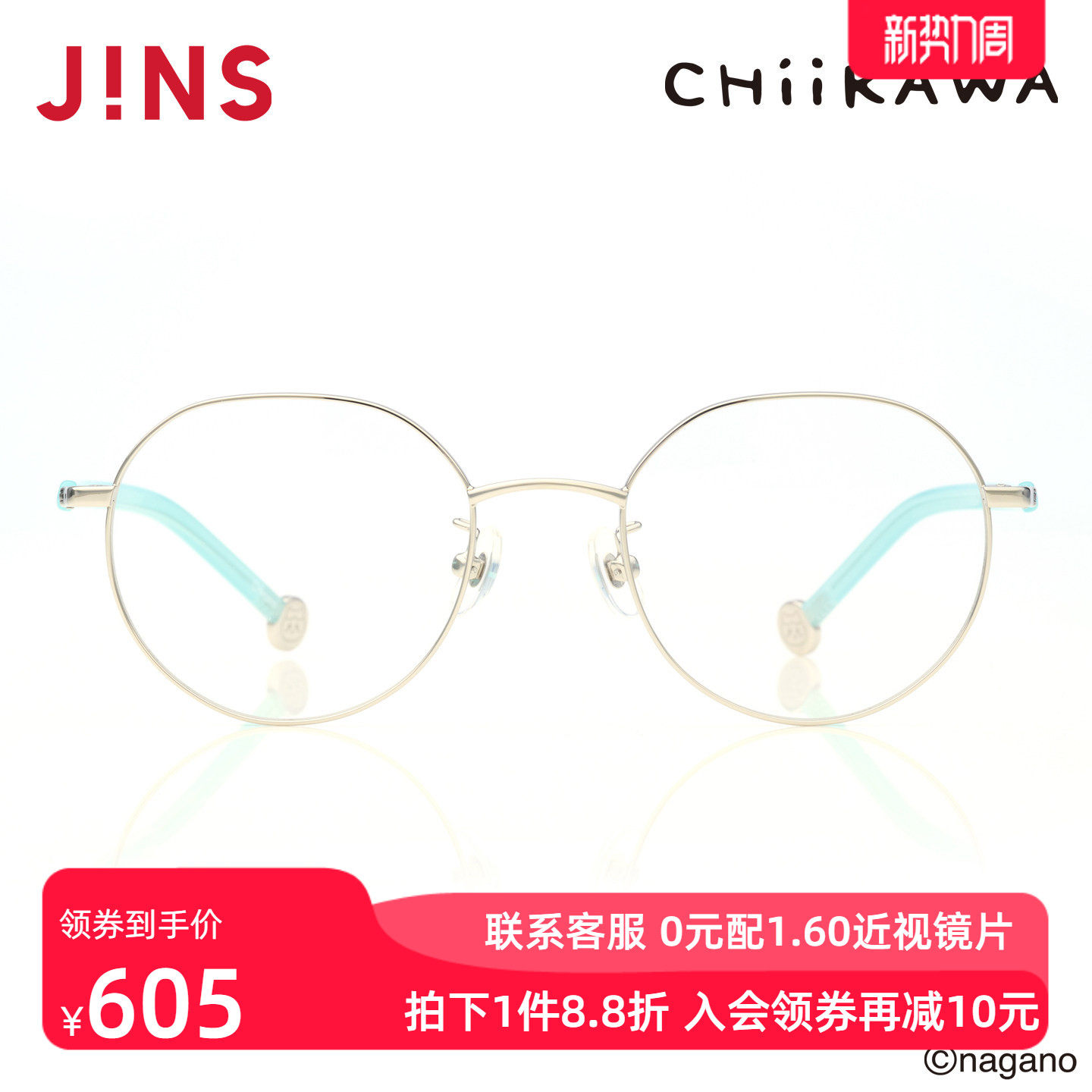 JINS睛姿吉伊卡哇哈奇喵合作款金属近视眼镜可加配镜片UMF25A279