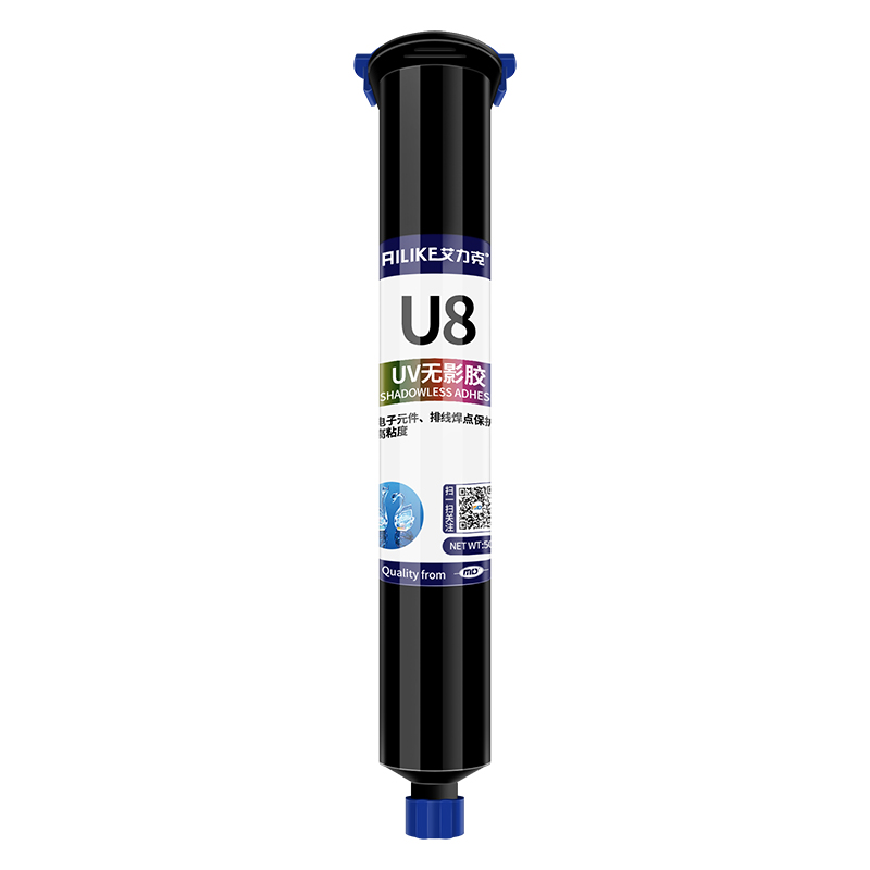 艾力克焊点电子UV胶透明U8高粘度排线固定电子元器件U9B蓝色增强型电路板焊点保护无影胶紫外线光快干固化胶