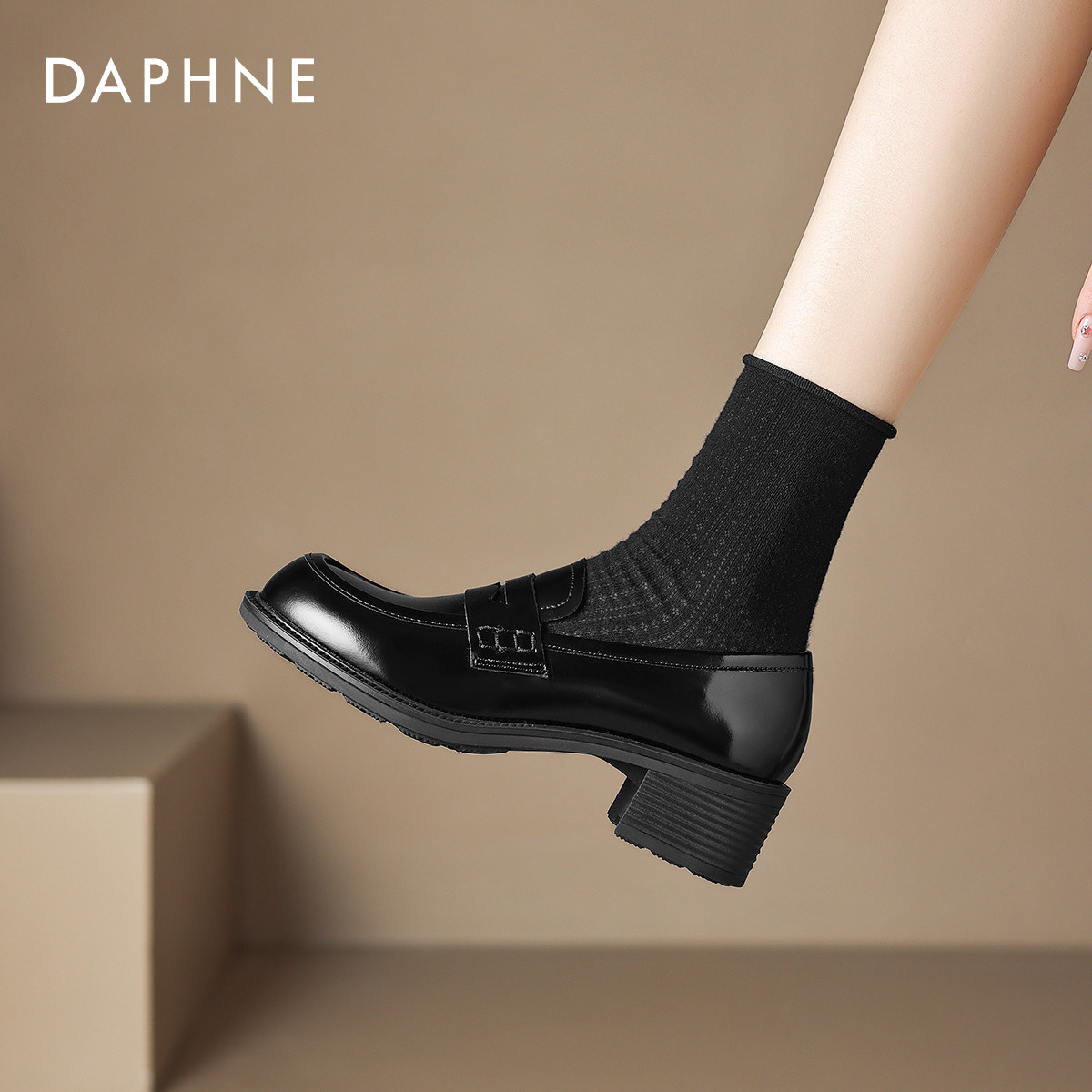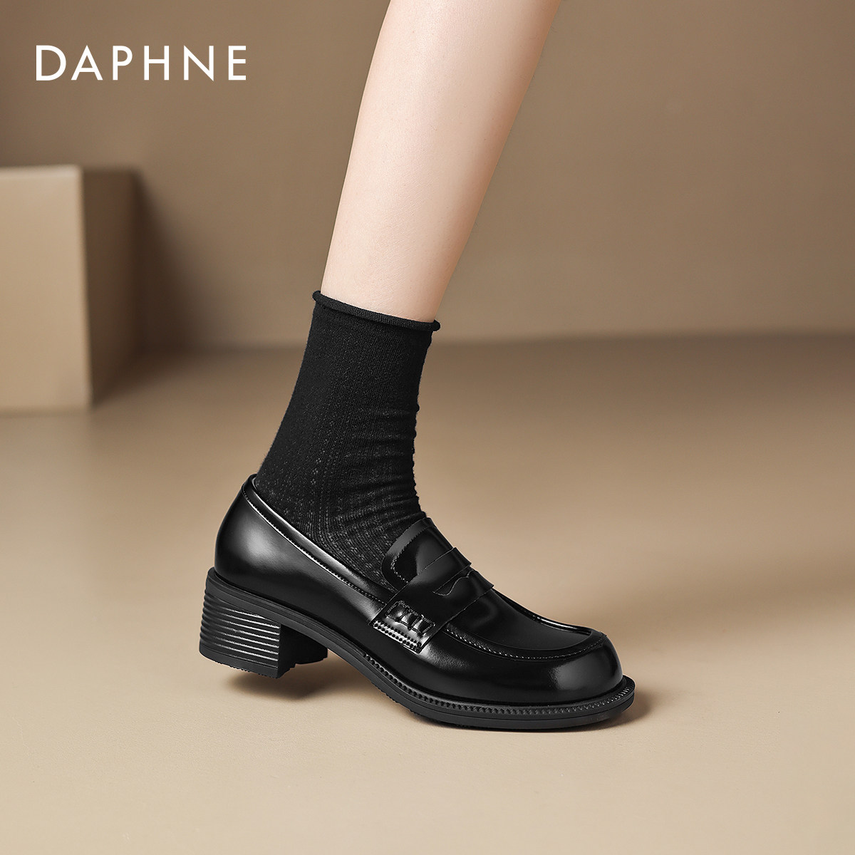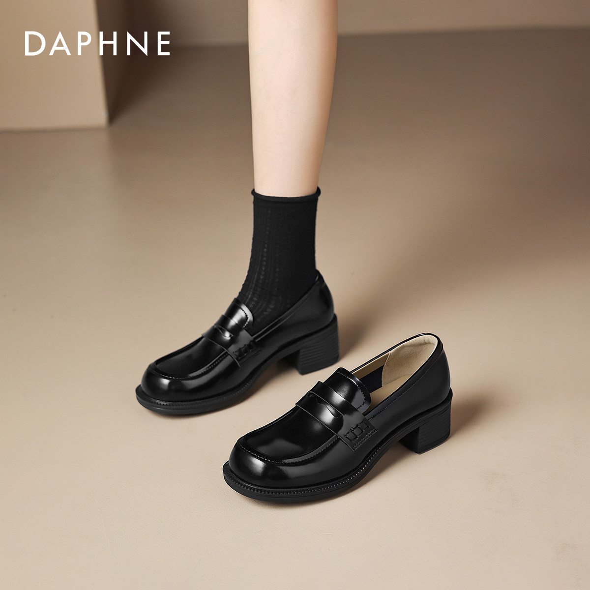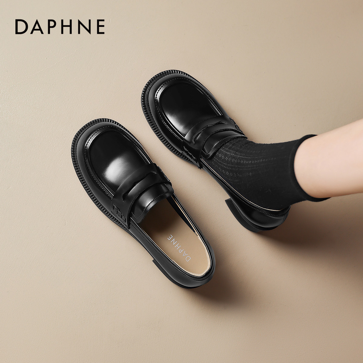 达芙妮黑色厚底乐福鞋女款2026新款春季英伦风巨好看小皮鞋豆豆鞋
