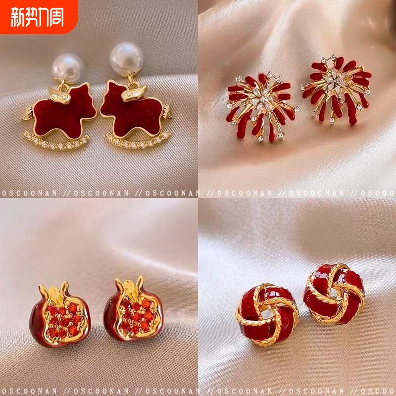 999纯银耳针耳环圈圈大圈秋冬红色耳饰女耳圈高级感轻奢素圈耳夹
