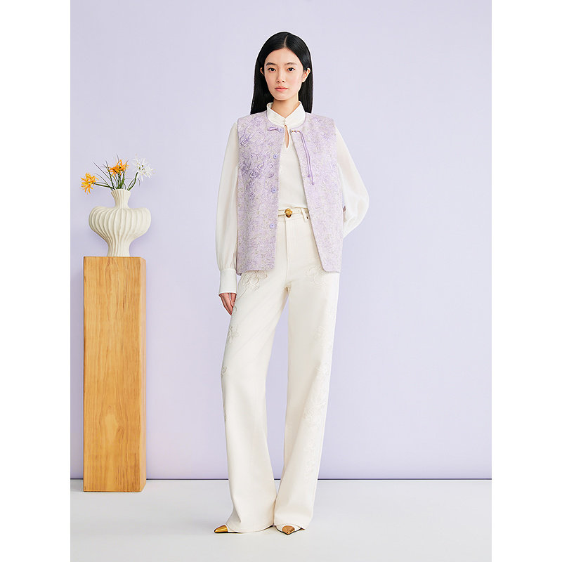 【新中式】YINER音儿2026春季新款重工盘扣刺绣棉麻混纺对襟马甲