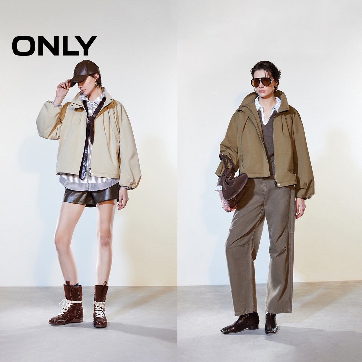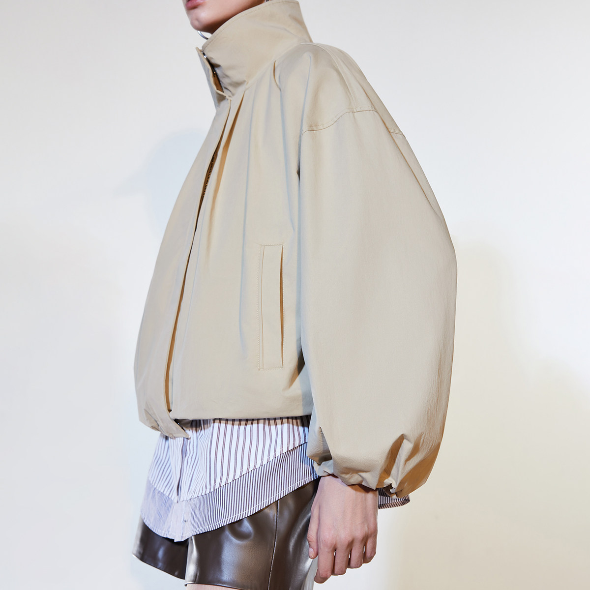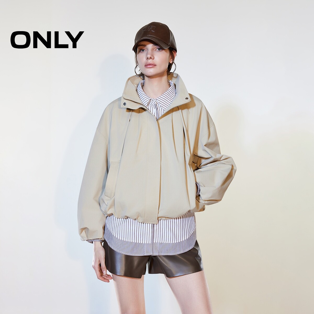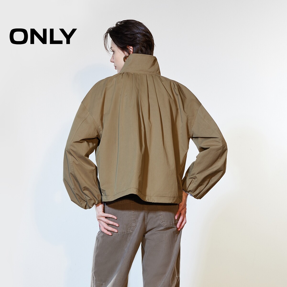 ONLY2026春季新款立领实用斜插口袋花苞立体袖舒适风衣外套女