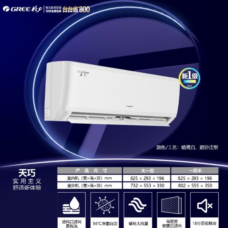Gree/格力天巧挂机空调大1匹1.5匹变频冷暖 除湿可拆洗家用壁挂式