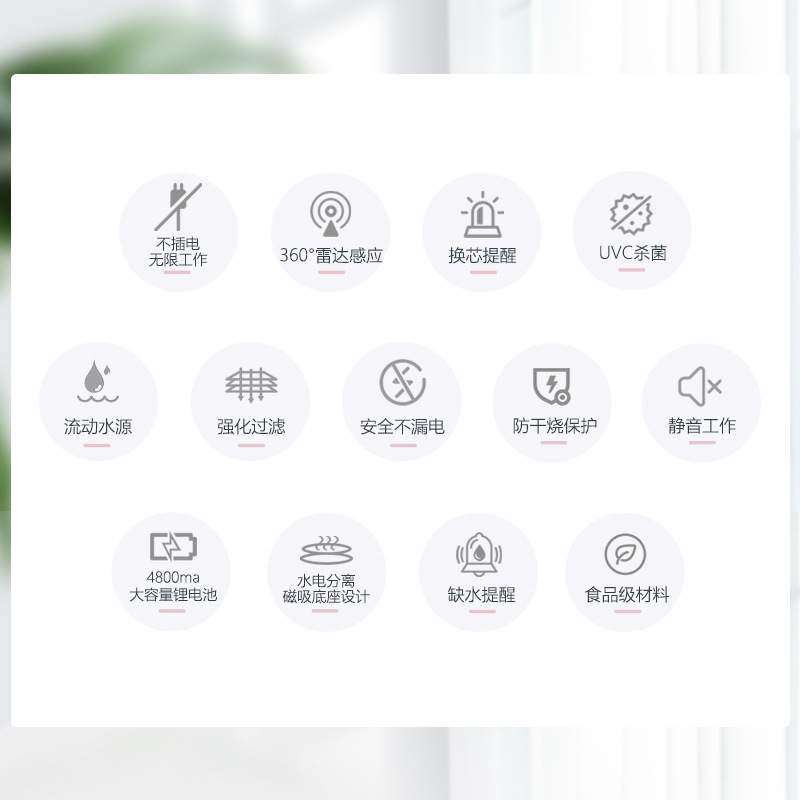 活水过滤360°雷达感应猫咪饮水器 自动循环智能无线宠物饮水机