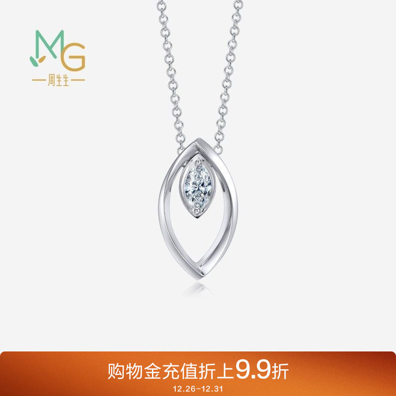 周生生珠宝饰品18KB白色黄金榄尖形钻石项链套链钻石项链92515U