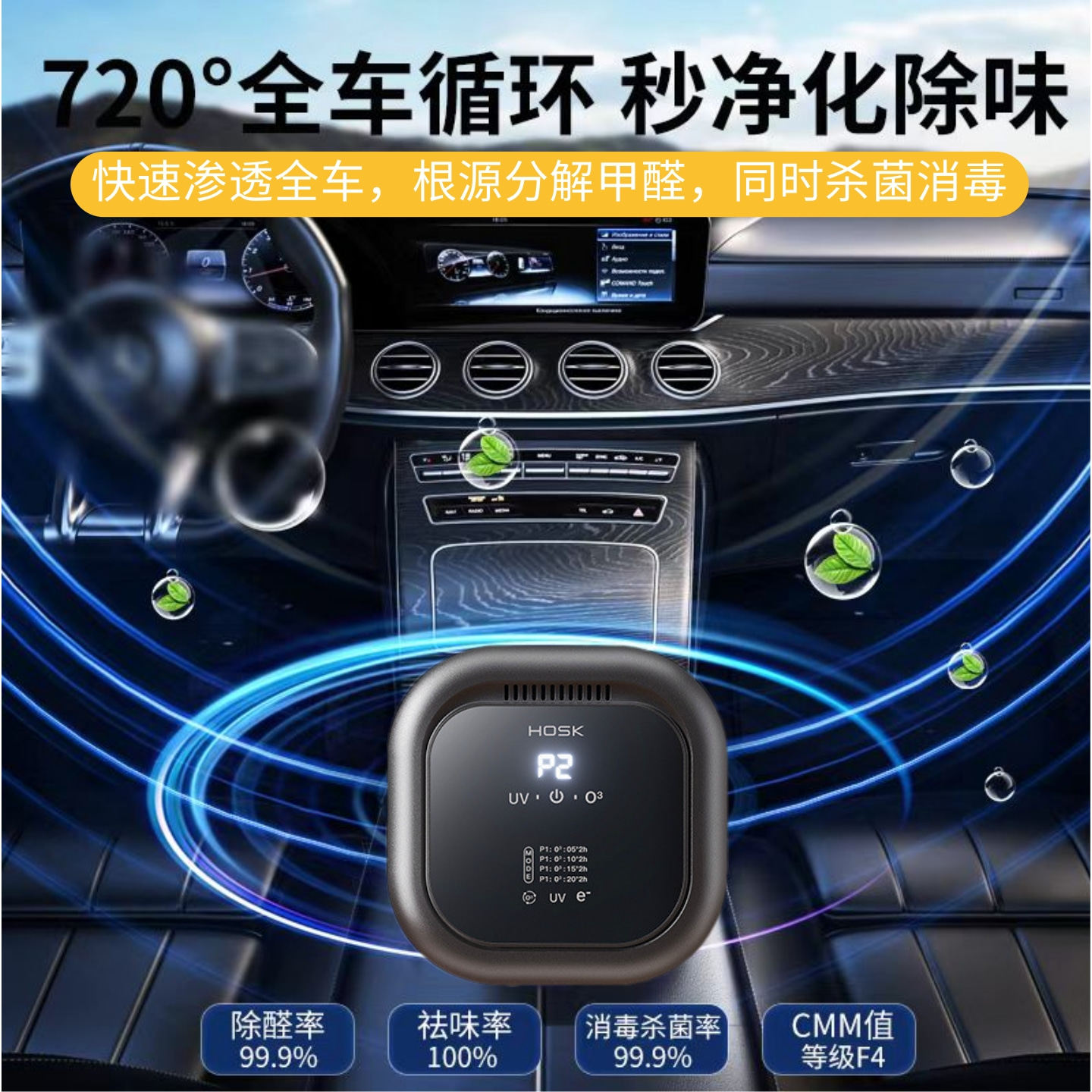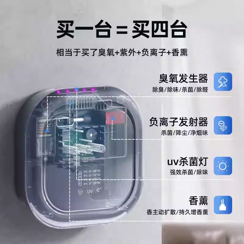 卫生间宠物除臭车载空气净化器室内消毒机厕所净味器祛异味负离子