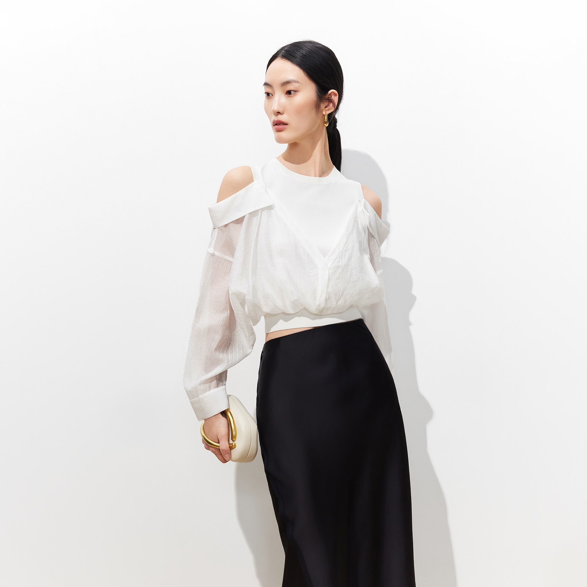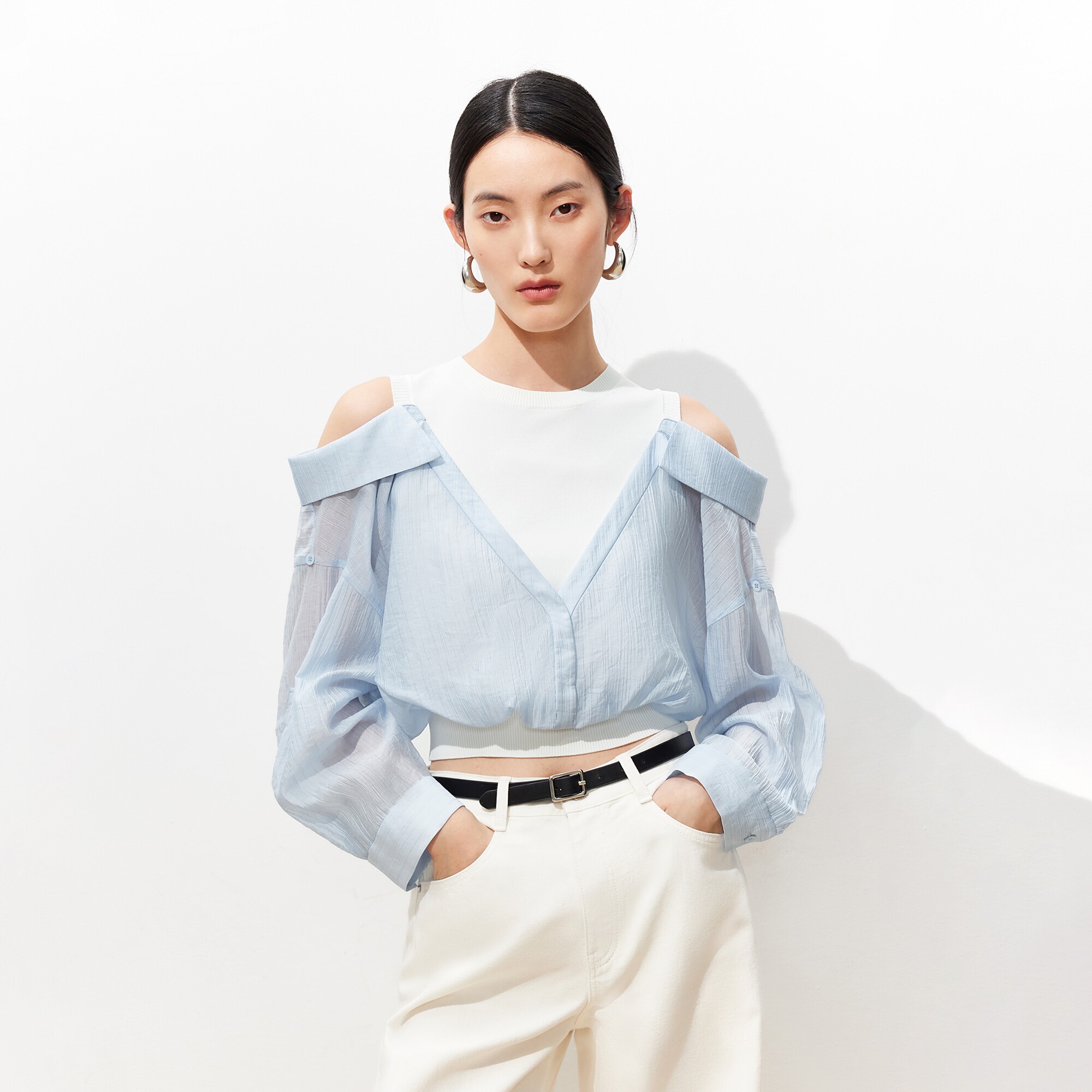 Couture Made上衣女2026春夏拼接露肩莱赛尔天丝325251001