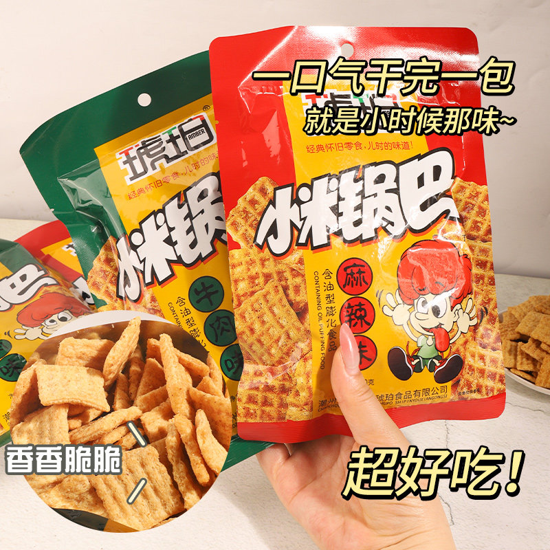 琥珀小米锅巴90g大包装网红爆款解馋小零食薯片休闲食品整箱批发