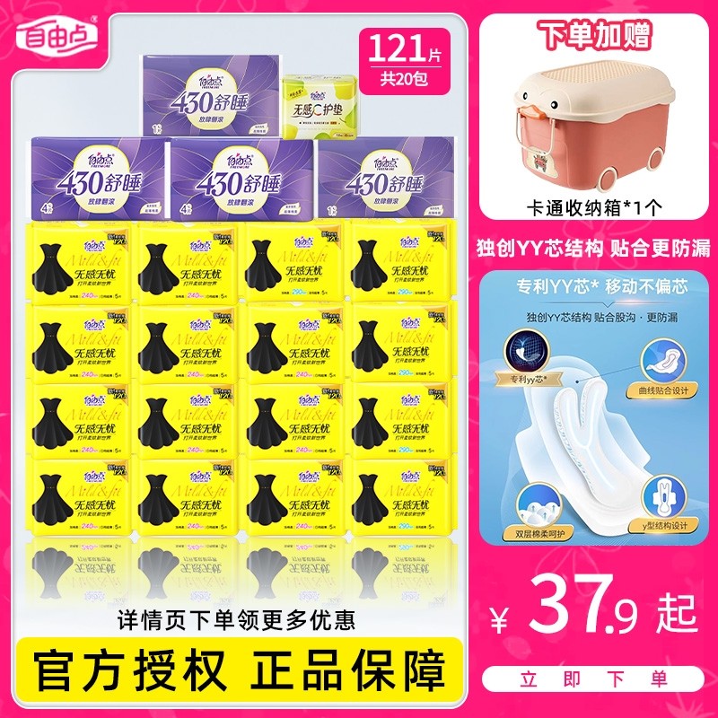 自由点卫生巾无感日夜用组合装姨妈巾官方旗舰店正品日用行李箱