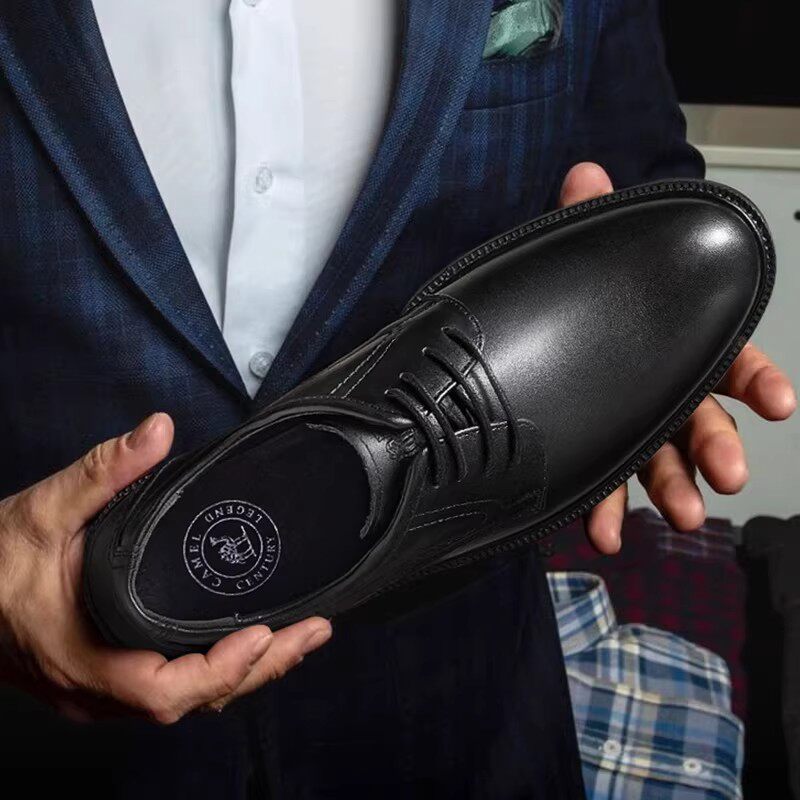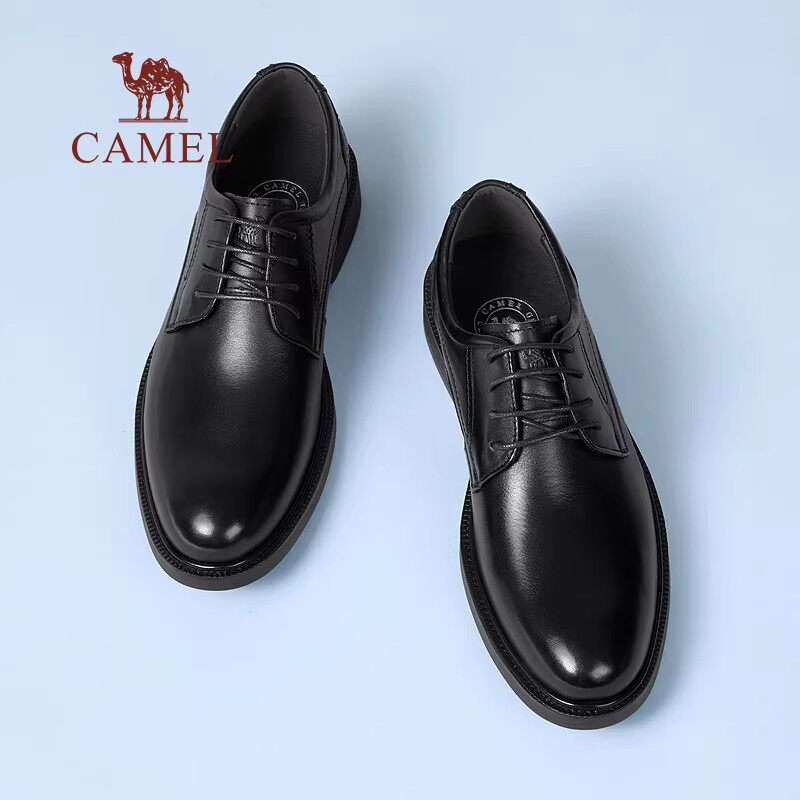 骆驼男鞋2026春季休闲软底皮鞋结婚新郎正装商务真皮增高德比鞋