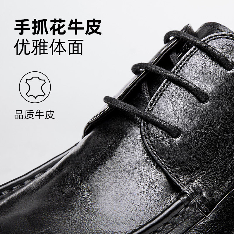 骆驼2025冬季舒适休闲加绒皮鞋男结婚新郎正装商务真皮增高德比鞋
