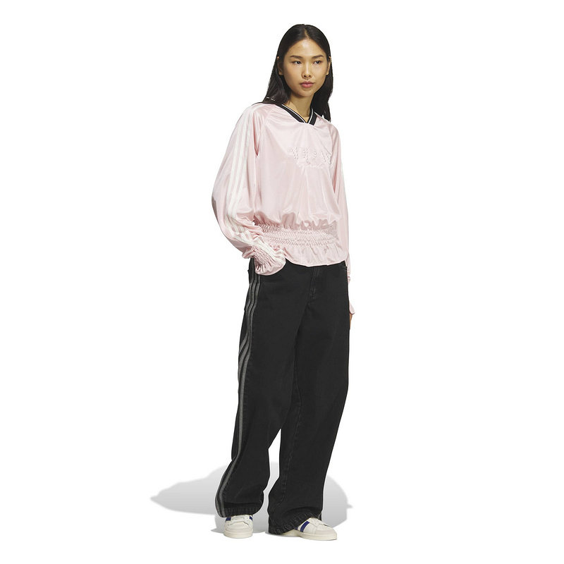 adidas阿迪达斯三叶草抽褶针织宽松球衣T恤粉色女长袖上衣 KS2880