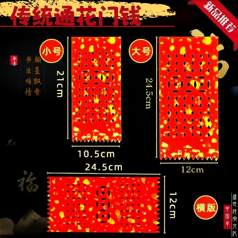 传统门贴】2026马年门贴利是钱老款过年大门贴纸打孔红色挂钱吊钱