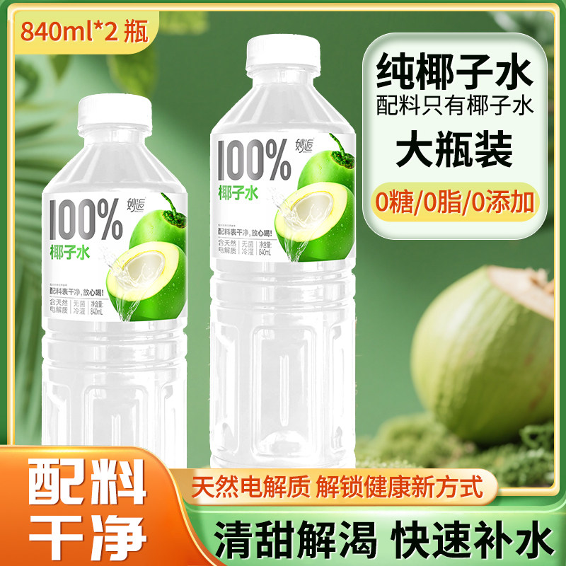 100%椰子水840ML瓶装果汁饮料天然电解质无添加整箱批发冰镇新鲜