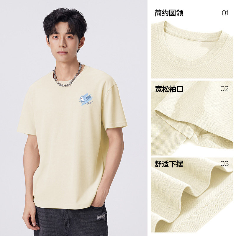 GV真维斯华夫格短袖t恤男士夏季潮牌五分半袖宽松休闲体恤上衣服C