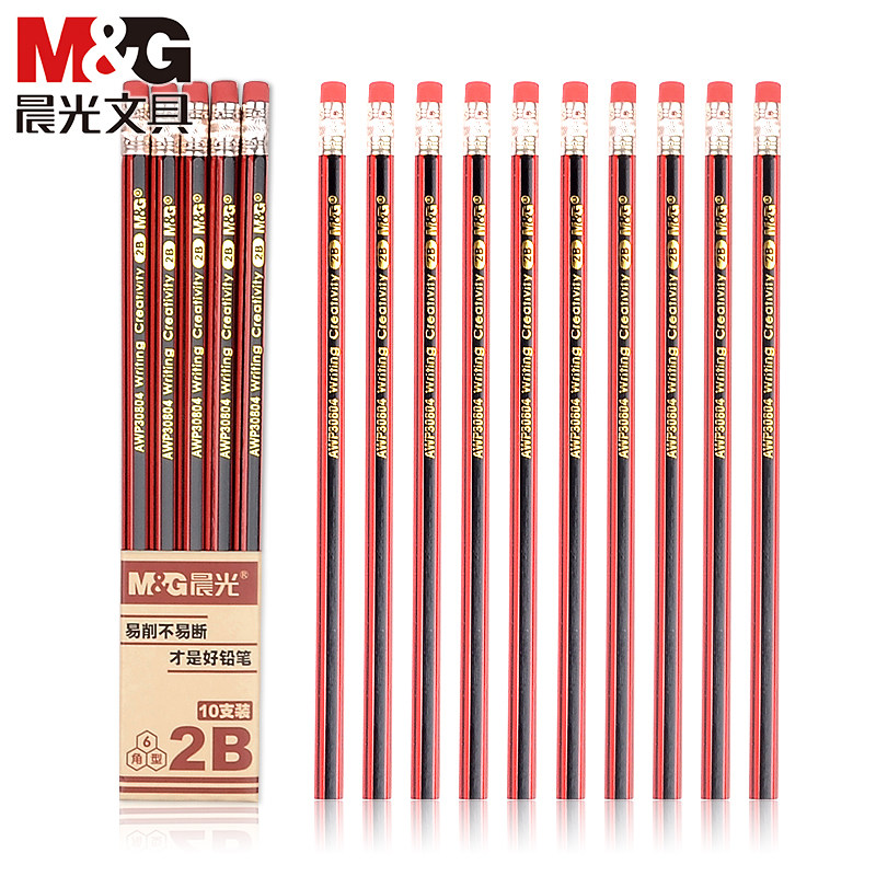 晨光小红杆铅笔2b小学生专用一年级二年级安全无铅毒卷笔刀橡皮六角笔杆易抓握学生考试用答题卡hb木杆涂卡笔