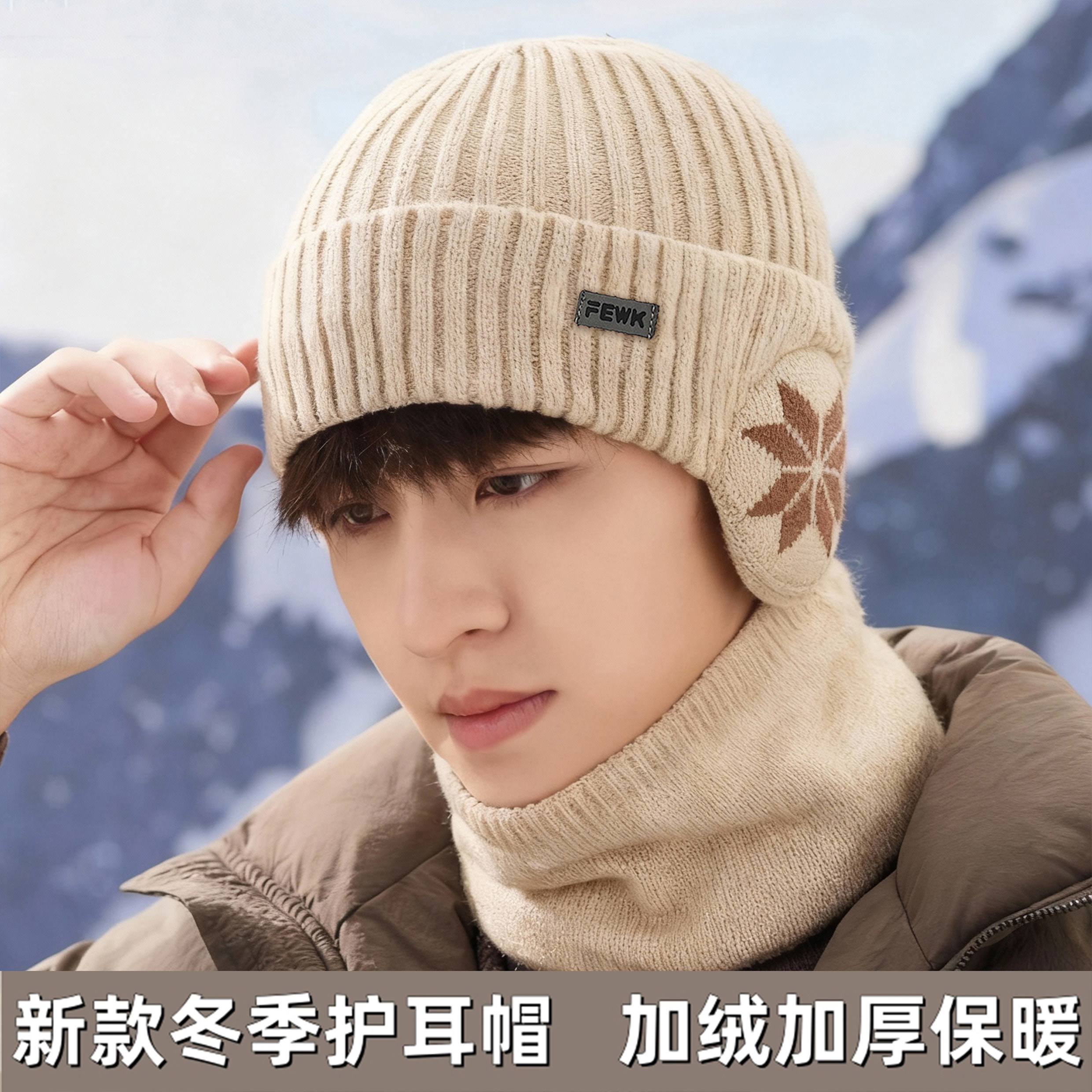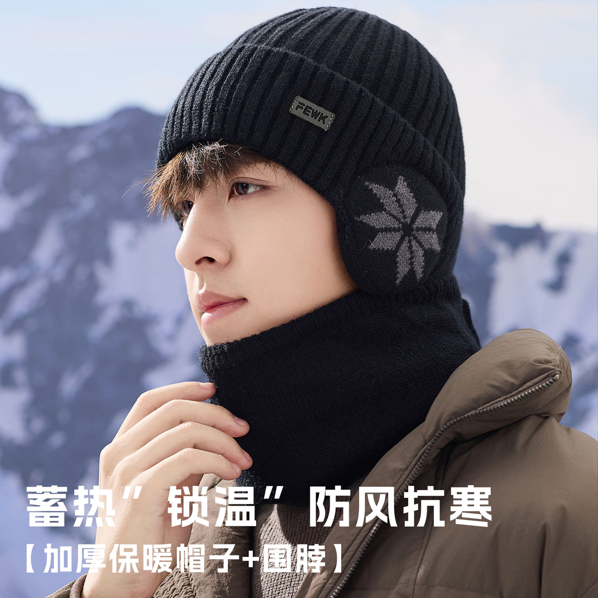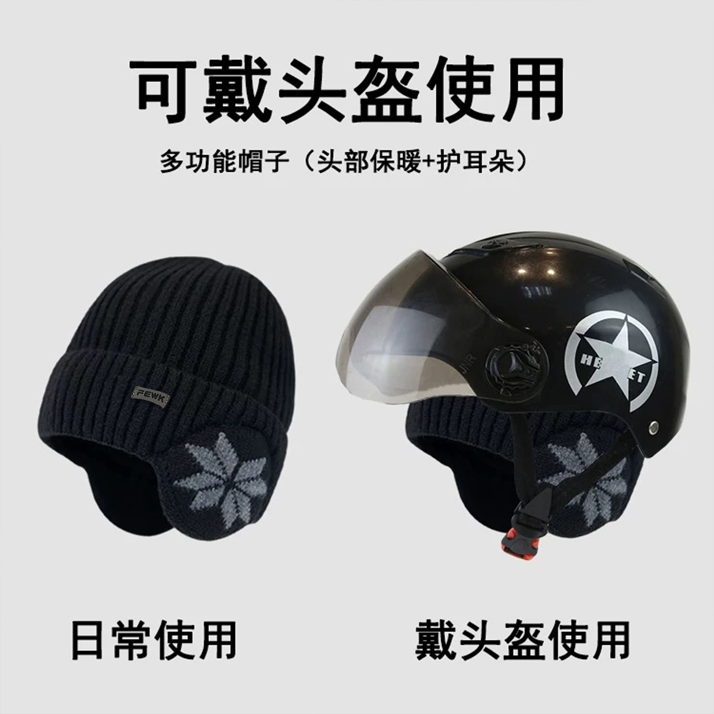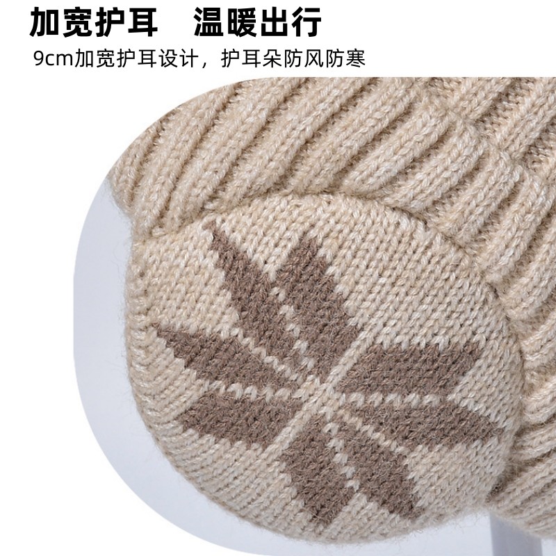 帽子男士冬季保暖羊毛混纺针织帽男中老年人防风防冻护耳骑行棉帽