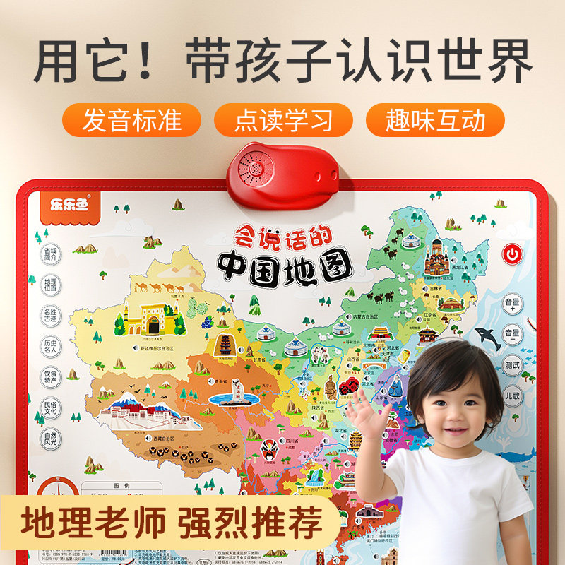 乐乐鱼中国世界地图儿童版的早教有声挂图点读幼儿发声会说话音标