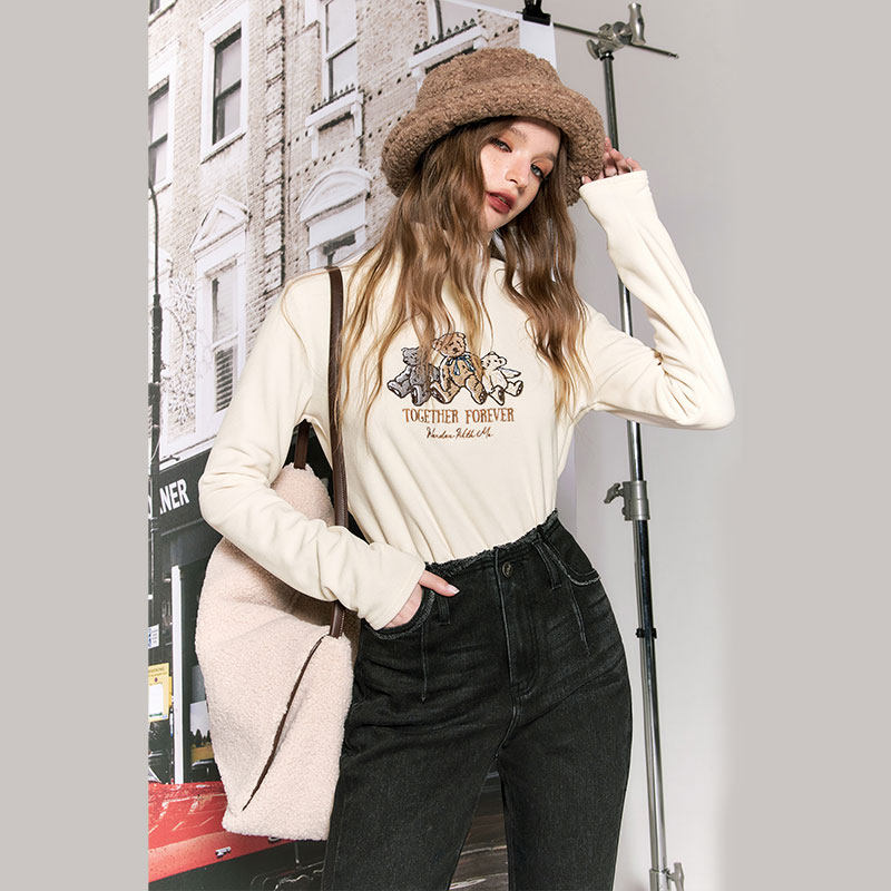 蕉下摇粒绒打底衫女秋季新款半高领保暖加绒亲肤内搭上衣肌底衣