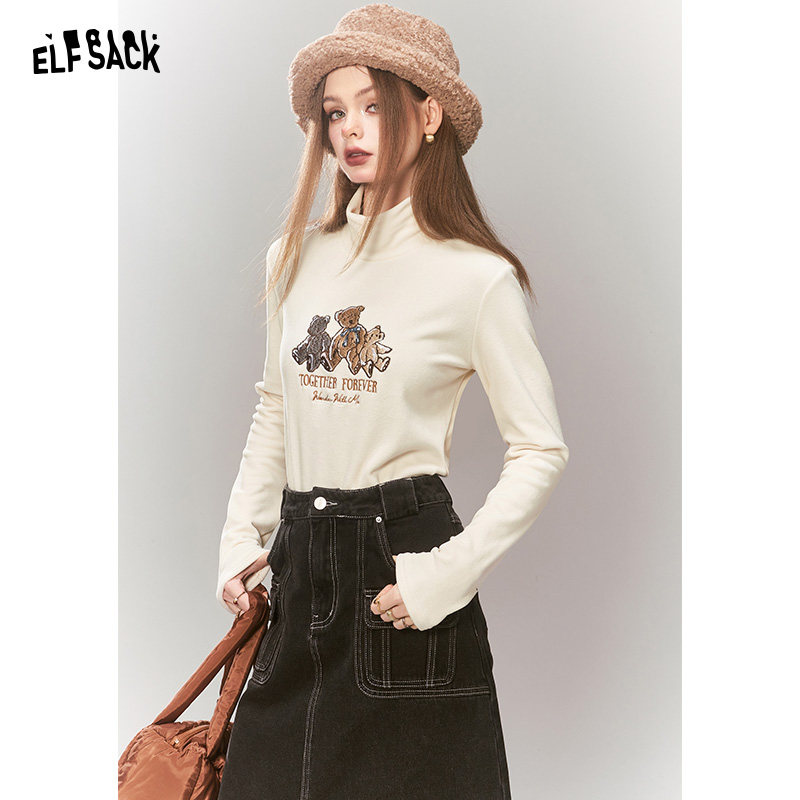 妖精的口袋双面奥利绒白色高领t恤女2026早春新款内搭修身打底衫