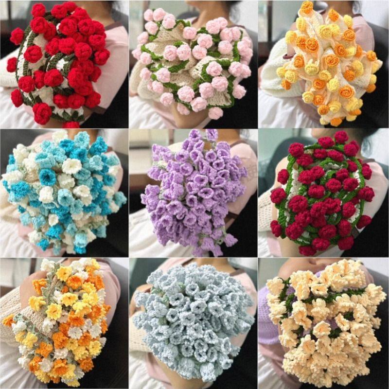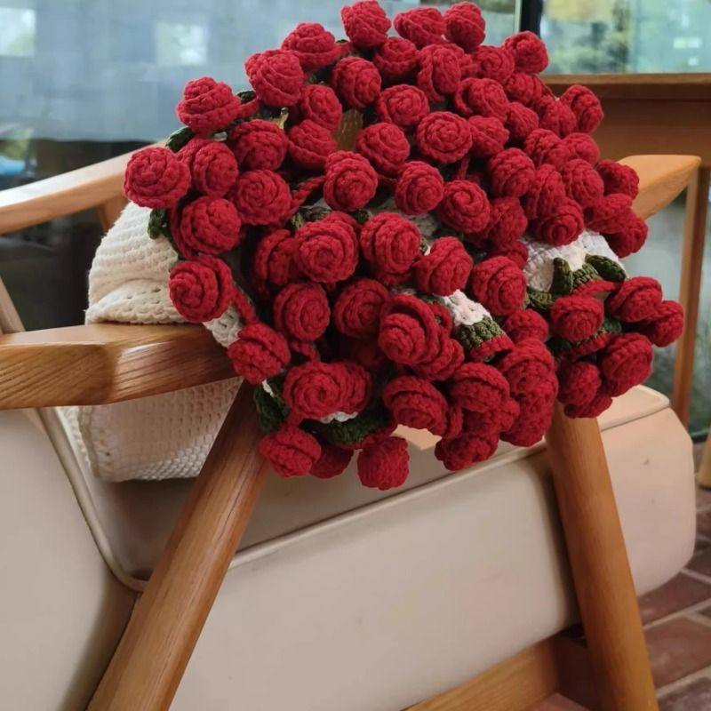 玫瑰花束毯子成品纯手工diy编织生日礼物女生送闺蜜实用毛毯现货