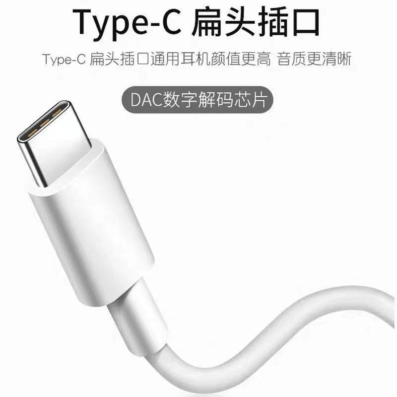 充电口Type-c数字音频扁头接口有线耳机重低线控带麦通话有线耳机
