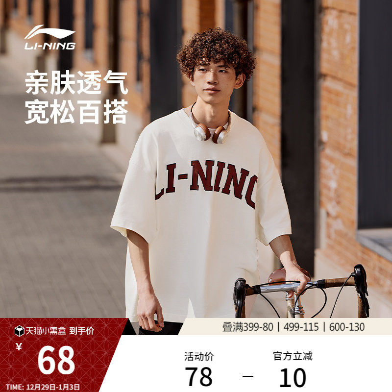 李宁短袖男士夏季情侣美式复古上衣圆领印花半袖宽松运动T恤女士