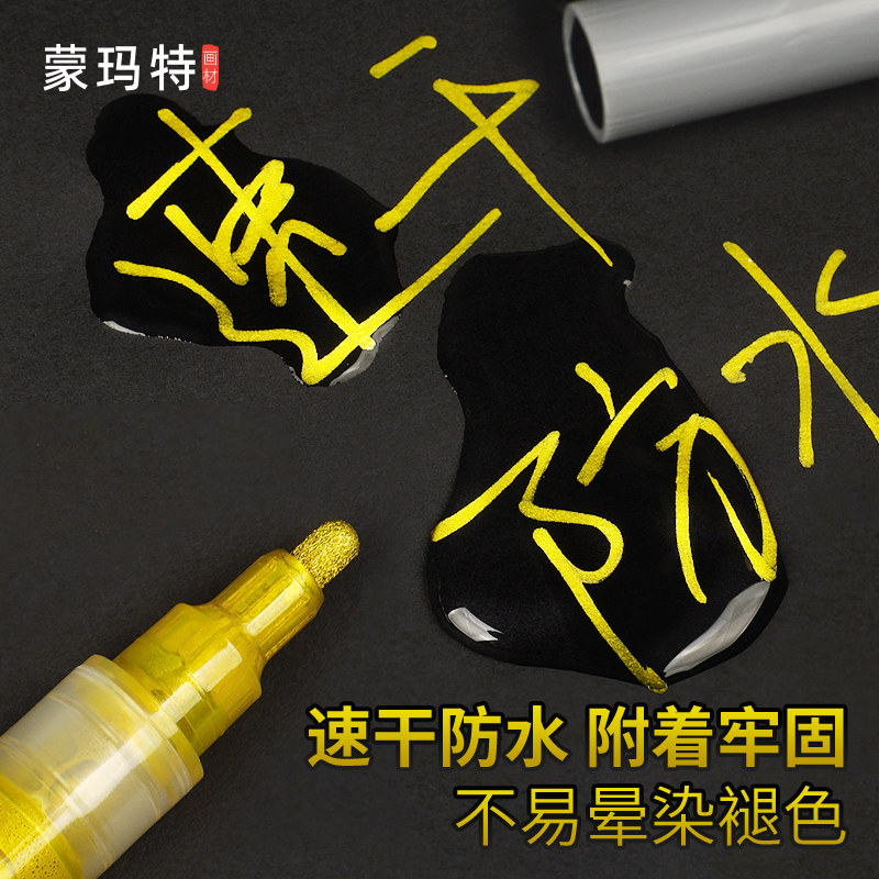 蒙玛特 金属丙烯马克笔防水不易掉色签名笔明星防水高达模型补色笔金色银色电镀金漆工业咕卡高光白色记号笔