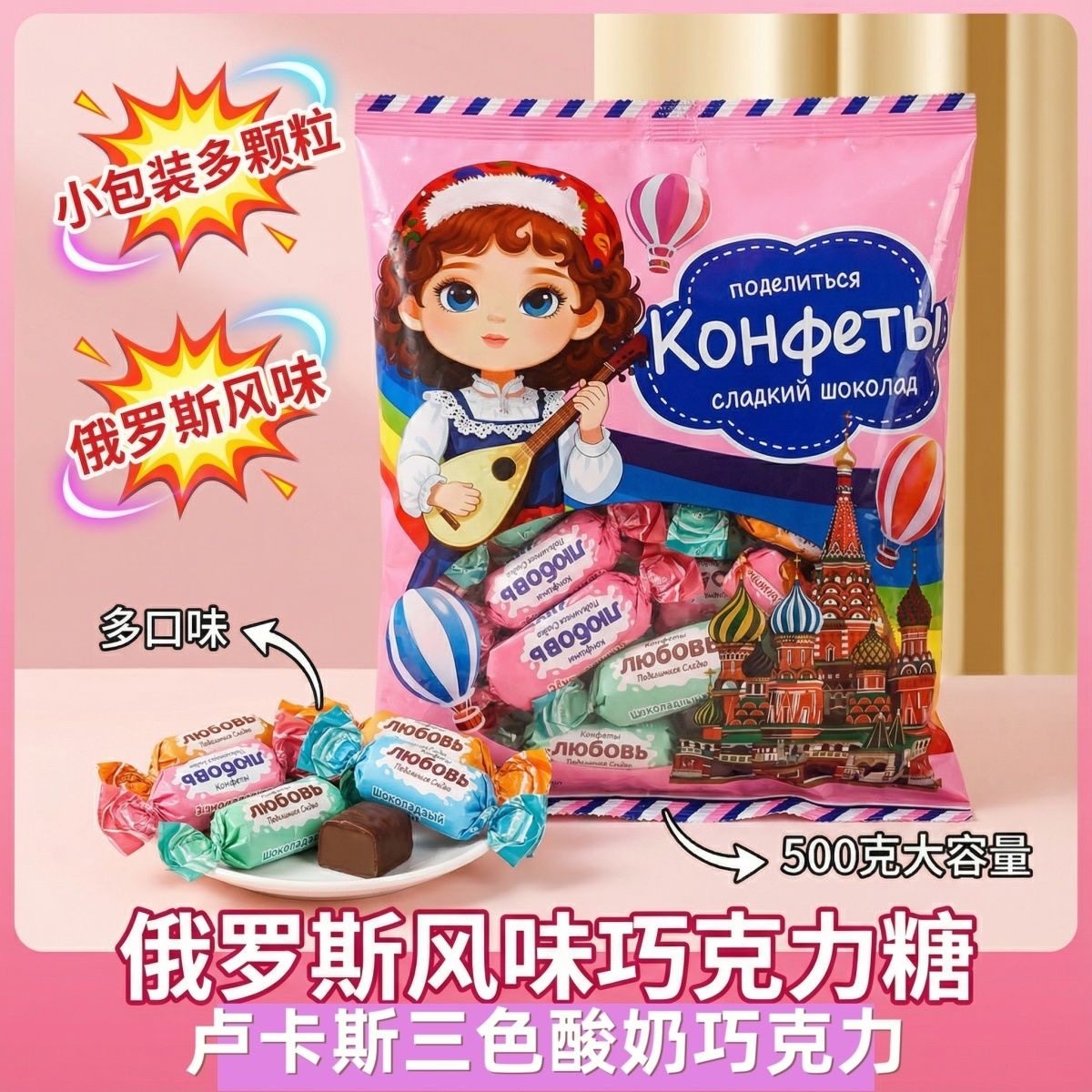俄罗斯风味三色酸奶巧克力喜糖年货零食(代可可脂)