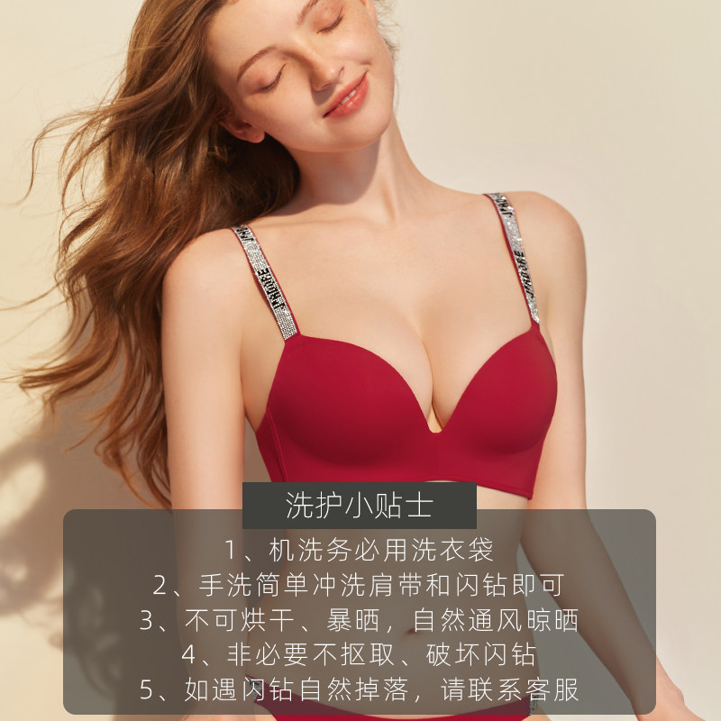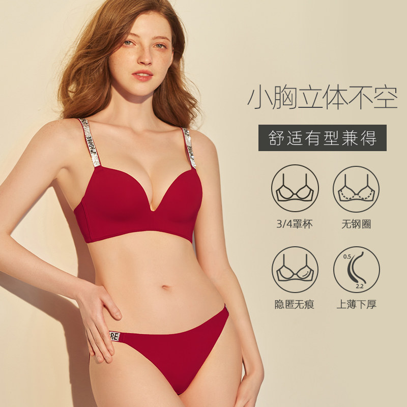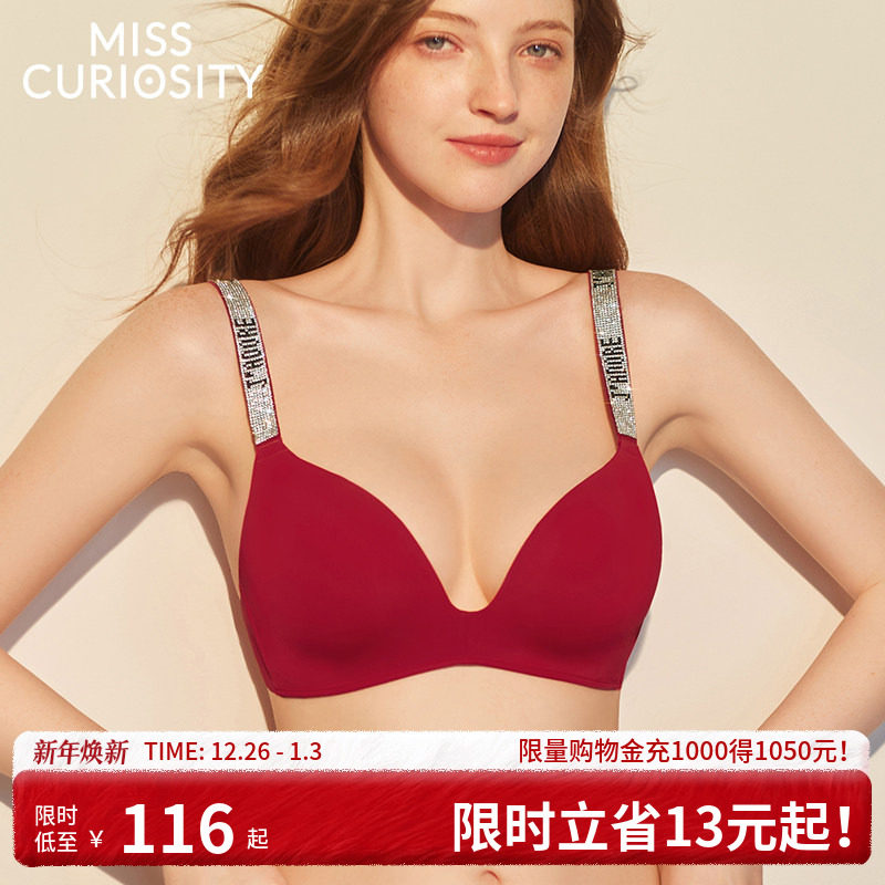 好奇蜜斯本命年内衣女小胸聚拢红色无钢圈胸罩结婚新娘性感文胸罩