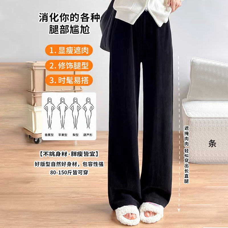 糯米裤女羊羔绒垂坠感软糯加绒加厚秋冬韩系慵懒松弛感阔腿裤TB