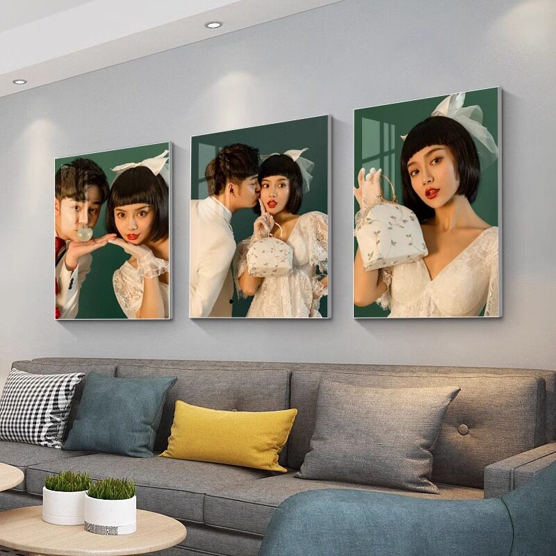 结婚相框照片墙组合挂墙背景墙房间客厅布置三联画定制挂画框卧室