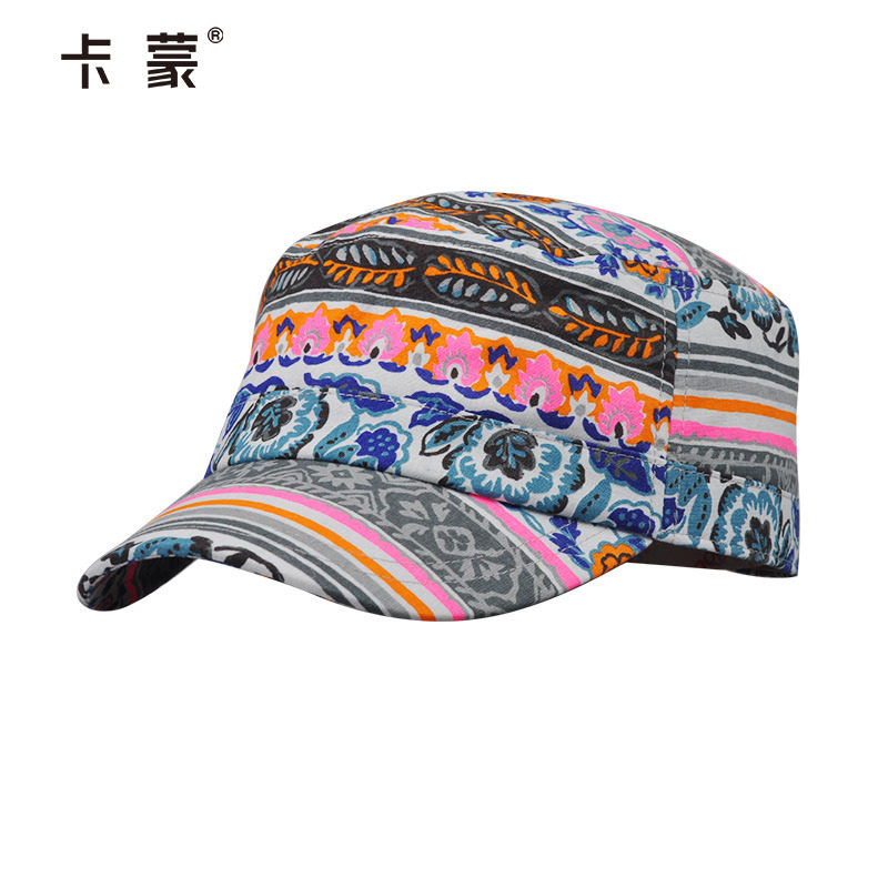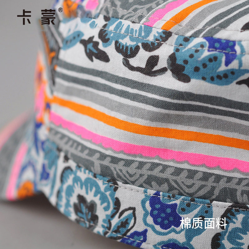 卡蒙平顶帽女士秋冬帽子休闲百搭全棉帽子短帽檐青年印花鸭舌帽