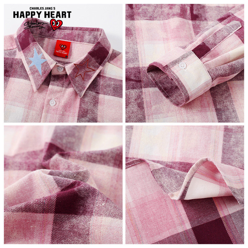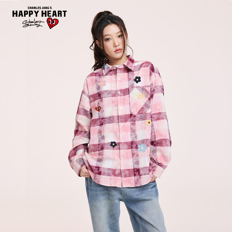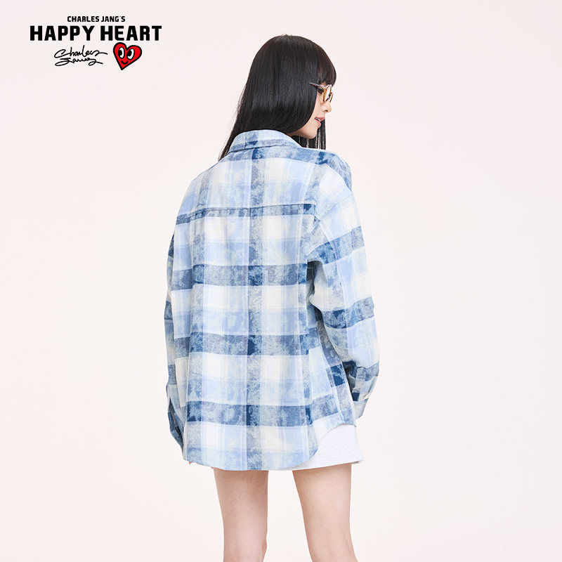 查尔斯桃心 格子衬衫女慵懒风复古宽松衬衣开衫外套薄款春秋上衣