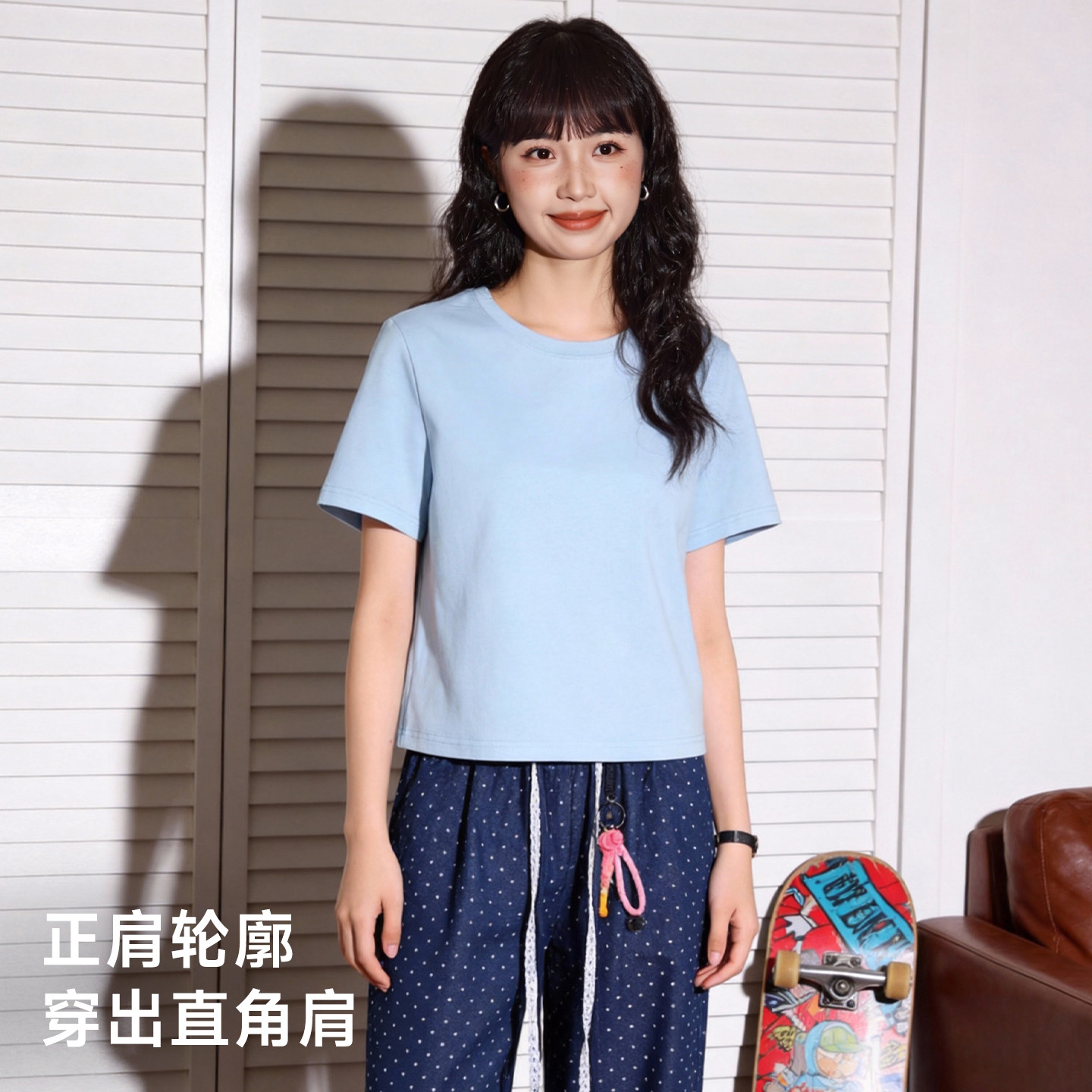 凉感T森马短袖T恤女短款修身正肩收腰2025夏新款上衣百搭白色体恤