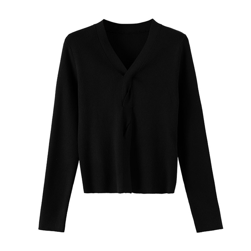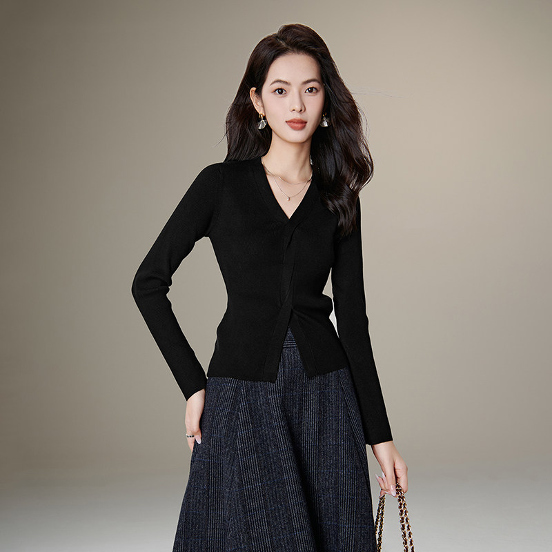 晚白2026春季新款V领巨好看上衣设计感套头修身毛针织衫女毛衣