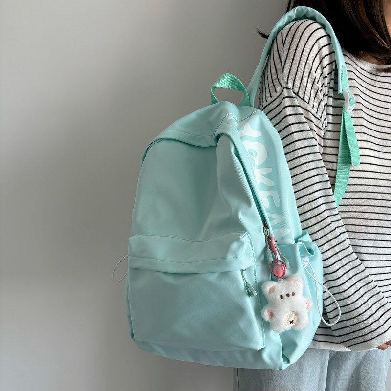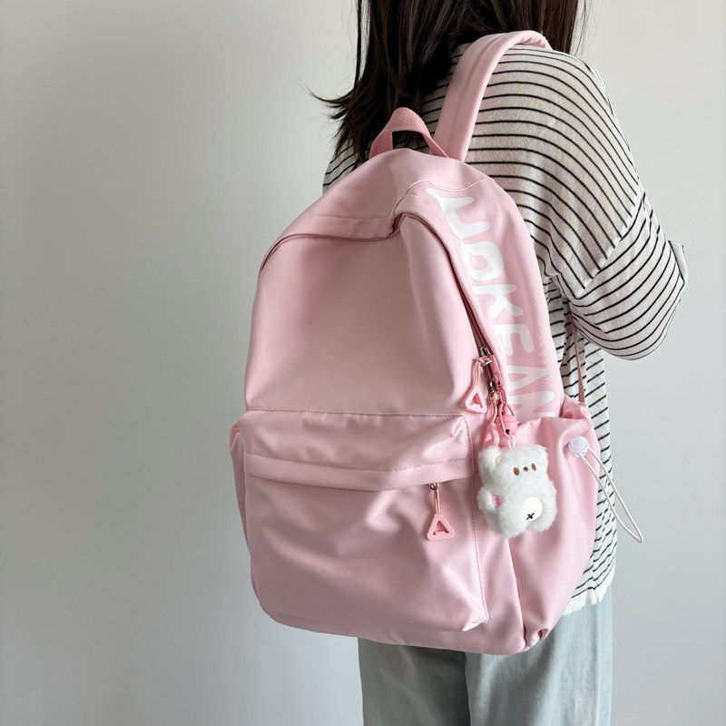 简约双肩包女日系旅游少女书包女大学生双肩背包黑色白色帆布立体